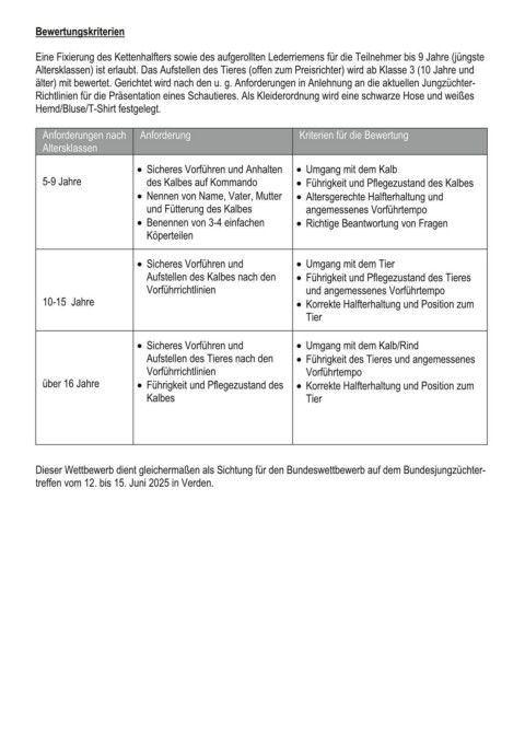 älter) mit bewertet. Gerichtet wird nach den u. g. Anforderungen in Anlehnung an die aktuellen Jungzüchter-